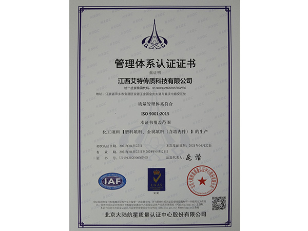 艾特傳質是精湛的傳質材料生產商,已開發塑料填料、金屬填料、陶瓷填料、填料塔等傳質裝備、塔內件、塔盤、容器塔器,消防管道及消防新材料、水處理材料等產品100多種,產品具有自主知識產權,廣泛應用于化工、化肥、焦化、氯堿、鹽化、電力、環保、煉油、煤制油、制藥、消防等行業的傳質過程;公司通過了HXQC質量管理體系認證、ISO9001質量管理體系認證、ISO14001環境管理體系認證、OHSAS18001職業健康安全管理體系認證,產品遠銷美國、德國、以色列、韓國、日本、阿聯酋等幾十個國家。